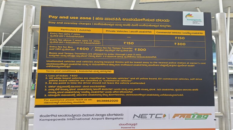 According to a BIAL source, stay and overstay charges were for vehicles accessing the arrival pickup lanes at Terminal 1 and 2.