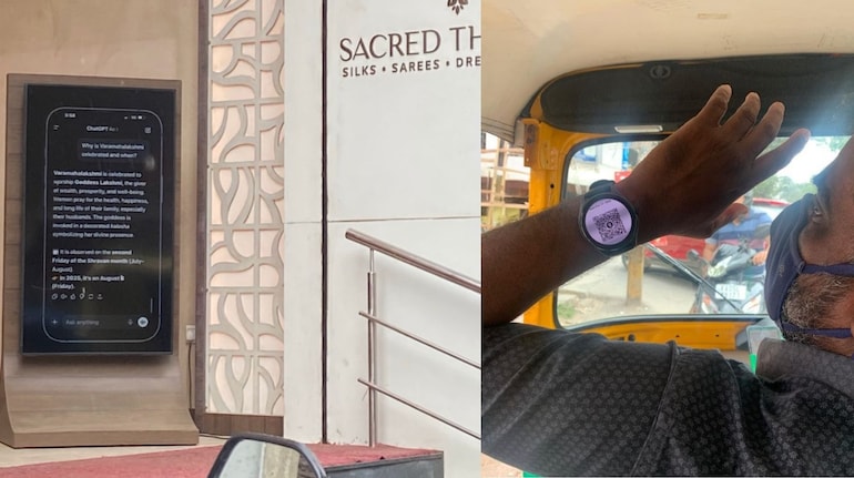 Bengaluru is often called the tech capital of India and for good reason. The city has always found clever, everyday ways to blend technology with tradition. Whether it’s auto drivers flashing QR codes on smartwatches or shops using virtual receptionists, Bengaluru has had its fair share of “peak tech” moments. The latest one? A saree shop using a ChatGPT-style mobile screen to grab attention ahead of the Varamahalakshmi festival.