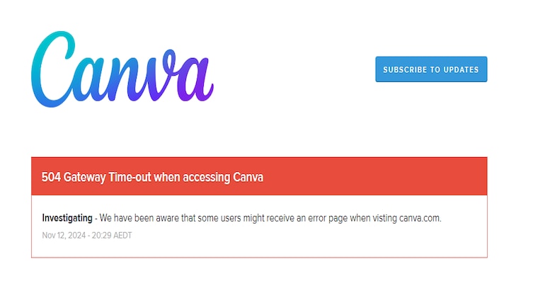 After a temporary global outage on November 12, Canva is back up and running, allowing users to resume editing and downloading designs on the popular graphic design platform. Earlier in the day, users worldwide reported disruptions, including difficulties accessing saved projects and delays in completing time-sensitive tasks. The outage, which Canva acknowledged on its status page as a “504 Gateway Time-out,” had impacted businesses, marketers, and content creators who rely heavily on Canva for daily design needs.
