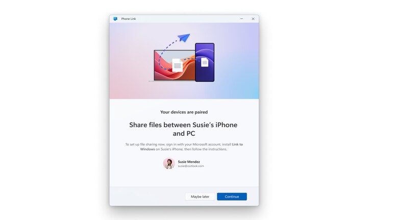The feature can be set up during the Phone Link installation process or by visiting aka.ms/addAccount on a PC for users who have already paired their devices. Once configured, it allows two-way file sharing between iPhones and PCs.