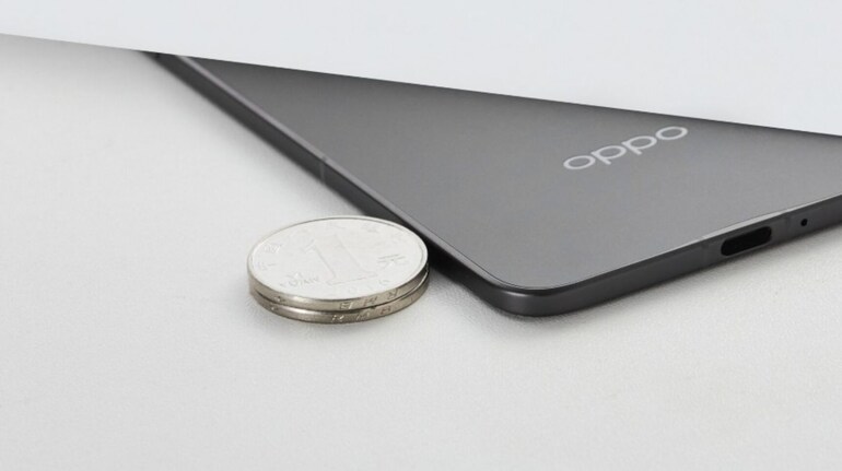 Recently, Oppo’s product manager of Find N series, Zhou Bao, posted a picture of the Oppo Find N5 on Weibo, which shows that the phone is mildly thicker than the USB Type-C port. Several reports have suggested that the Find N5 will be slimmer than the Honor Magic V3, which means that the Oppo Find N5 will measure less than 4.4 mm on each side. Another image shows that the phone is slimmer than two coins stacked one on top of the other and a stack of debit cards. Now, this is an incredible feat to achieve especially for a foldable phone