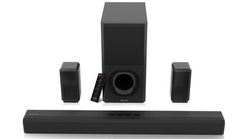 The Panasonic SC-HTS600GWK soundbar has a 5.1-channel sound system featuring Dolby Digital Plus tech and offers 600W RMS power output for a cinematic surround sound experience.