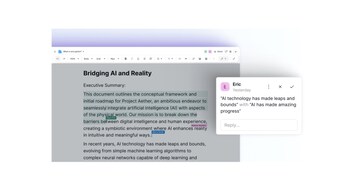 Users can see who else is viewing or editing the document and add comments to share feedback without editing the document. Comments are visible to all collaborators, keeping everyone in the loop. Also, users can upload .docx documents, edit them, and download in various formats like .docx, .txt, .md, and HTML.