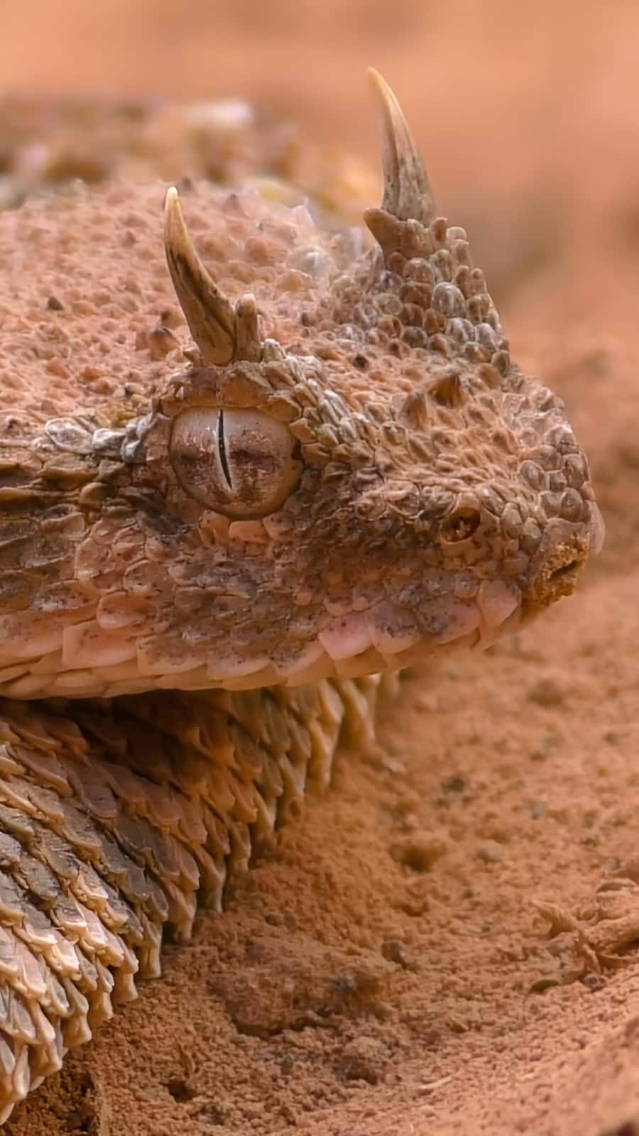 With horn-like scales and sidewinding movement, this snake hides under sand to ambush prey.