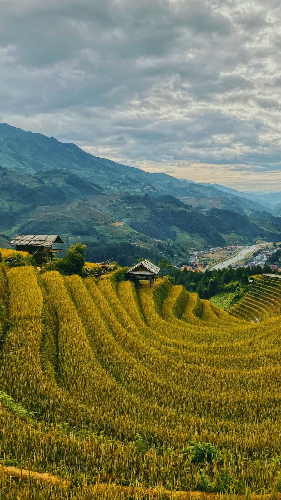 During harvest season, Mù Cang Chải’s terraced rice fields turn into shimmering golden waves, cascading down mountains like a masterpiece painted by nature, offering breathtaking views at every turn.