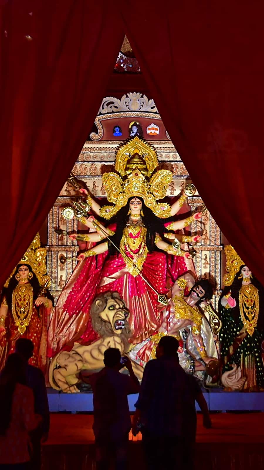 Mumbai Bengali Cultural Association’s pandal, with actress Rituparna Sengupta, features Pushpanjali, Aarti, Sindoor Khela, cultural performances, and traditional Bengali delicacies.