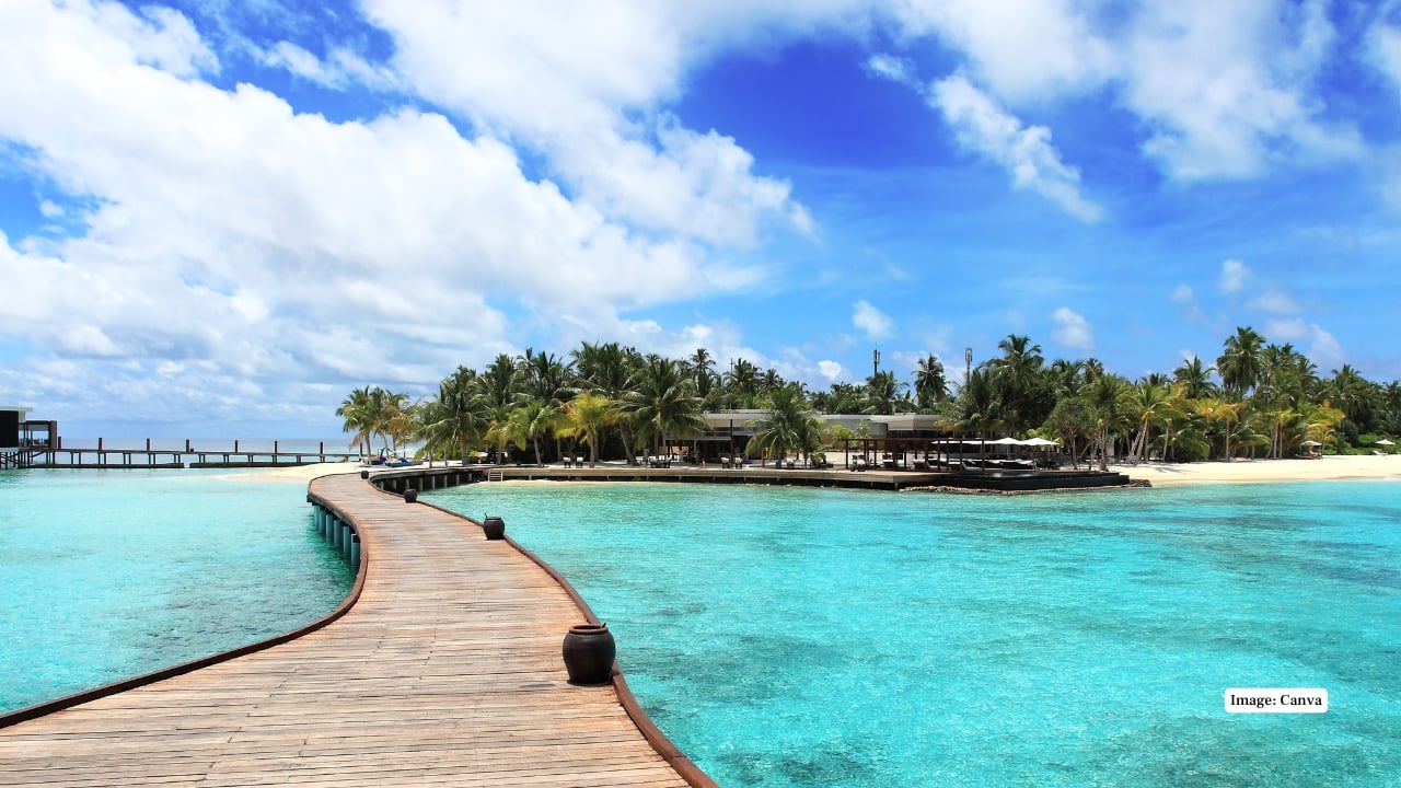 The lagoons and the overwater villas of the Maldives make the perfect romantic escape. The beach and snorkelling through coral reefs have made it a lovers' paradise through private dinners on the beach. (Image: Canva)