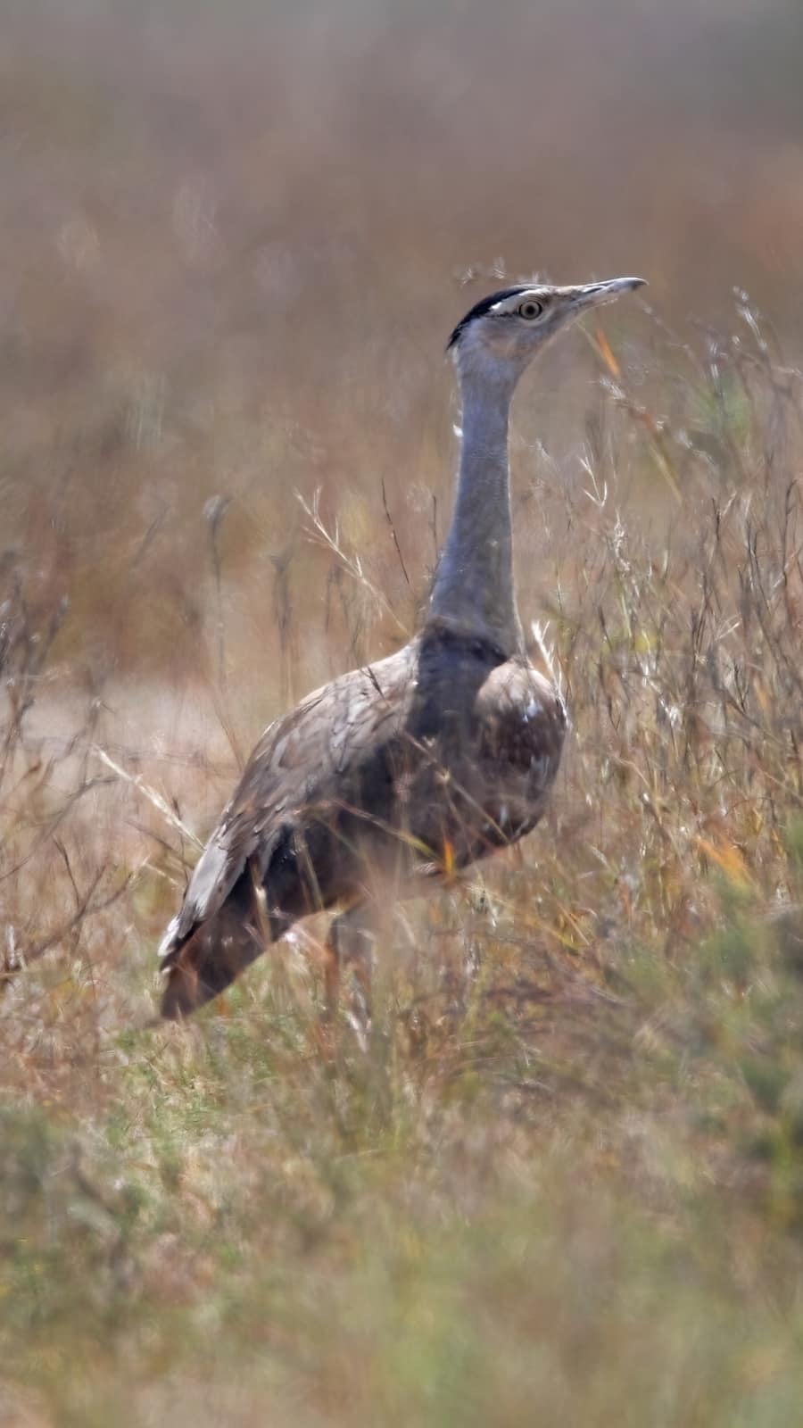 Open flat terrain and sparse vegetation here provide the ideal environment for the ground-dwelling bustard’s movements and displays.