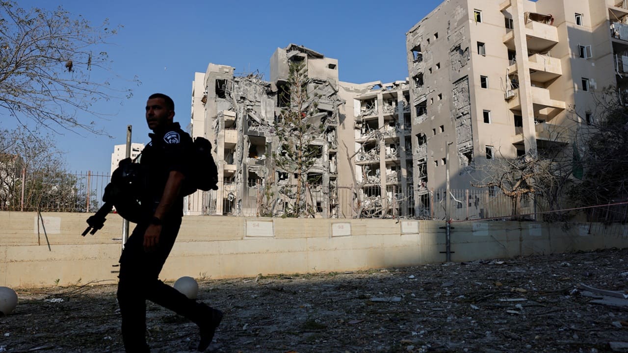 The missile hit a residential building in the southern city of Beersheba, where emergency teams continue to search through the rubble.