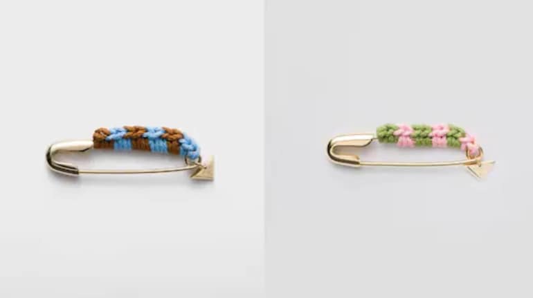 The piece in question is a “Crochet Safety Pin Brooch” from Prada, listed at approximately US $775 (about ₹68,758) according to reports. The design consists of what appears to be a conventional safety pin, wrapped with a colourful crochet cord and finished with the Prada triangle-logo charm hanging from one end.