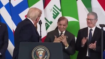 Pakistan prime minister Shehbaz Sharif was momentarily caught off guard on Monday when US President Donald Trump, while looking at his direction at the Gaza Peace Summit, suddenly praised India, leaving him smiling awkwardly.